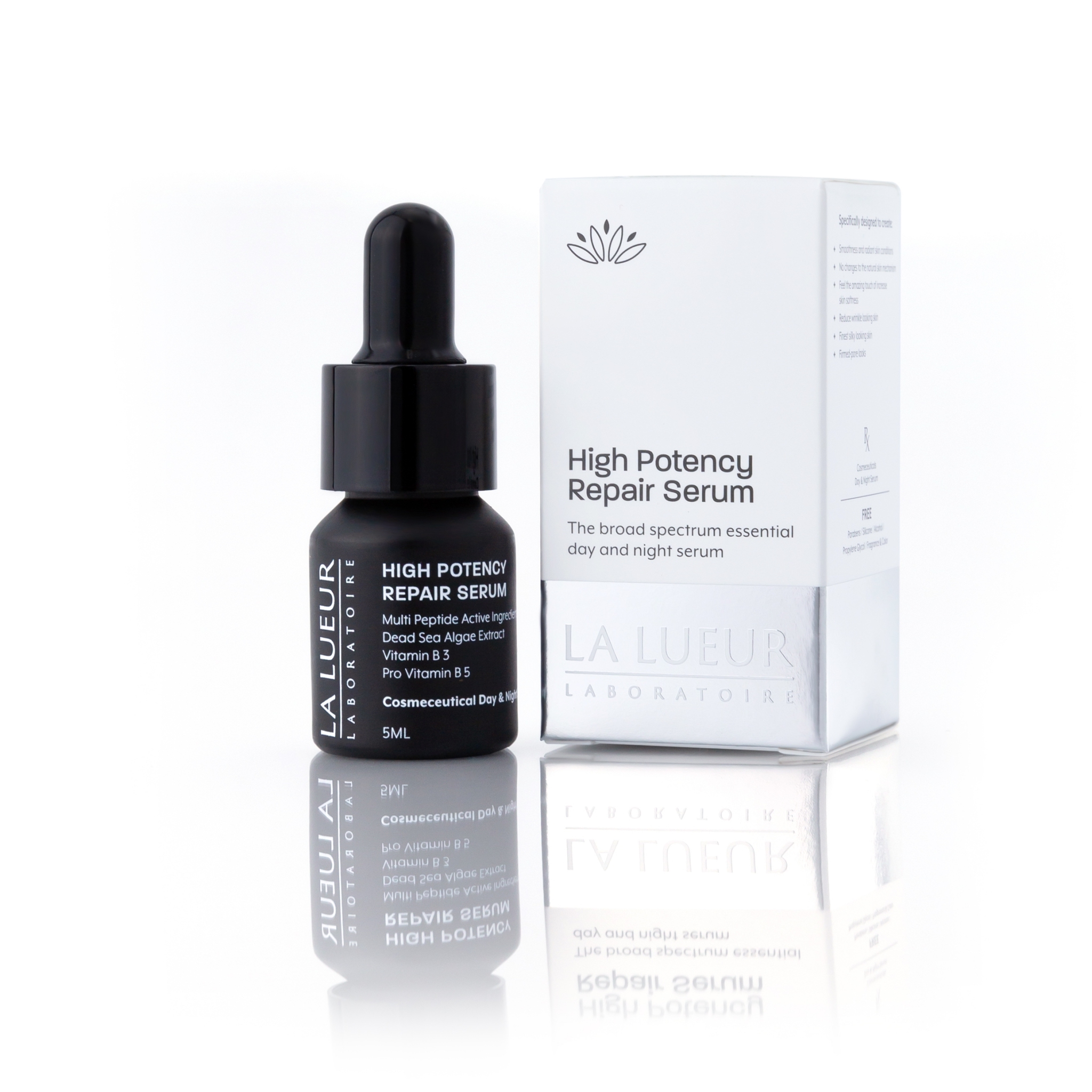 เซรั่มชนิดเข้มข้นสูง ช่วยฟื้นฟูและซ่อมแซมสภาพผิวด้วยเทคโนโลยีจากสวิตเซอร์แลนด์ (Swiss Technology) โดยออกแบบเปปไทด์แต่ละชนิดให้มีน้ำหนักโมเลกุลเล็กและสูตรโครงสร้างเฉพาะ เพื่อผลลัพท์ที่แตกต่าง อย่างเจาะจงกับเซลล์ผิว ผสานกับสารสกัดจากสาหร่าย Dunaliella salina ที่มีถิ่นกำเนิดจากทะเลเดดซี อันอุดมไปด้วย เบต้า แคโรทีน อะมิโนแอซิด และแร่ธาตุหลากชนิด เพื่อเข้าไปซ่อมแซมโครงสร้างเซลล์ผิวอย่างล้ำลึก และให้ผลลัพธ์ที่รวดเร็วขึ้น เหมาะสำหรับผิวที่ต้องการการฟื้นฟูอย่างเร่งด่วน เช่นผิวที่แห้งกร้าน ให้ผิวมีความชุ่มชื่น ป้องกันการสูญเสียน้ำ หรือผิวที่มีริ้วรอยจากภาวะของอายุที่มากขึ้น (Aging) เพื่อปรับสมดุลให้ผิวมีความยืดหยุ่น แข็งแรง มีน้ำมีนวล ป้องกันการเกิดริ้วรอย พร้อมทั้งส่งเสริมประสิทธิภาพการทำงานร่วมกับกระบวนการการสร้างผิวใหม่ที่แข็งแรง และเรียบเนียนตามธรรมชาติ